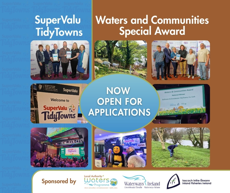 Thursday, 15th May 2025: The Waters and Communities Special Award, co-sponsored by the Local Authority Waters Programme (LAWPRO), Waterways Ireland and Inland Fisheries Ireland (IFI), is now open for applications. This special award has been a regular feature in the main SuperValu TidyTowns competition since 2017.
