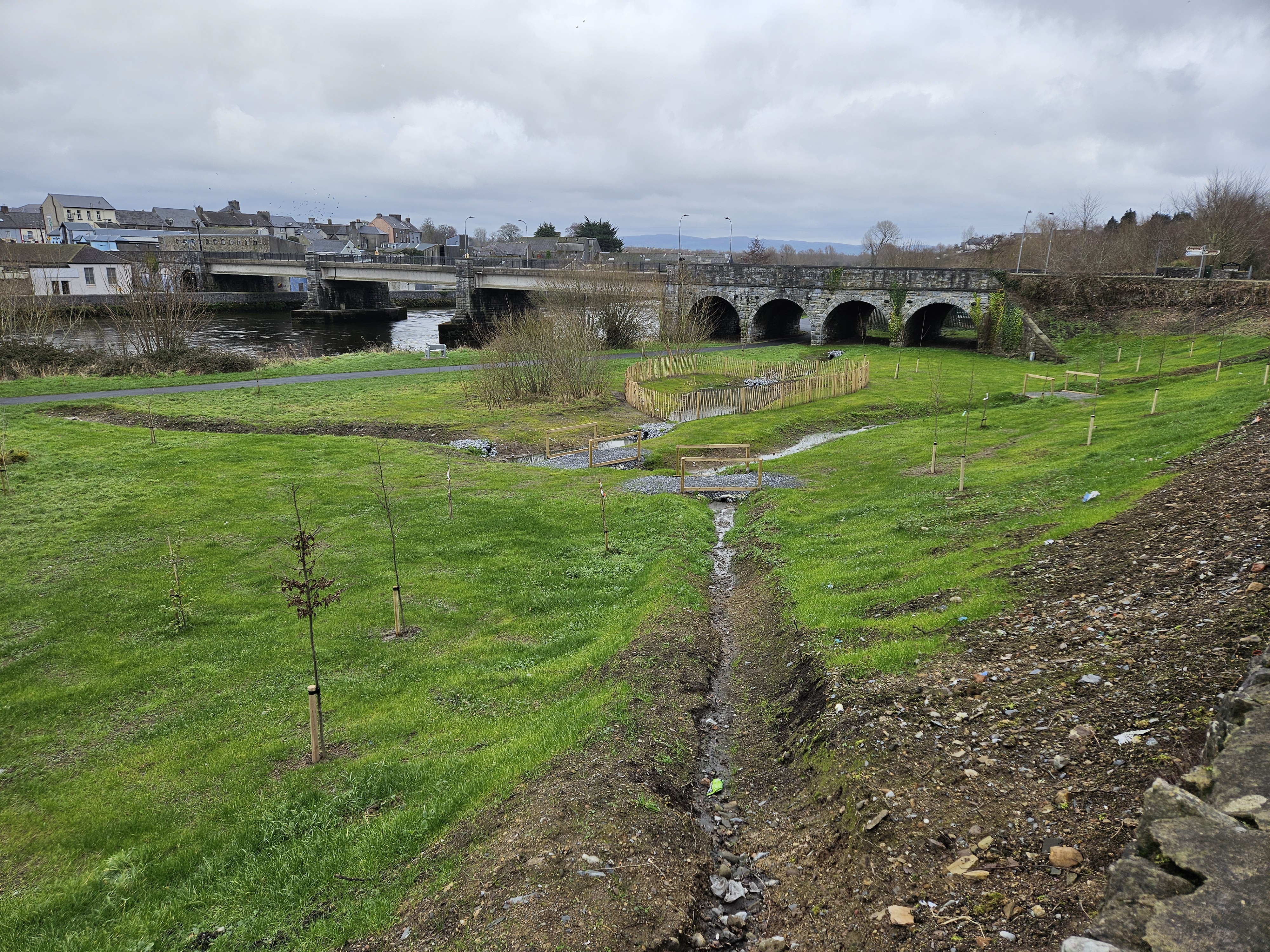 “By incorporating Nature-based Solutions such as swales and ponds, the project filters out pollutants from the adjacent road on the Waterford side of the town. The new Water Action Plan for Ireland strongly supports the use of Nature-based Solutions to protect water quality, biodiversity and provide greater resilience in the face of climate change challenges such as increased flood risk.