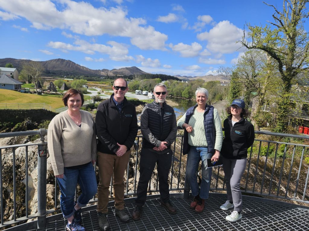 Photo Caption 1: Taken in Sneem, a potential location for the art works and an area rich in Blue Dot water bodies. Included in the photo are Eleanor Turner, Biodiversity Officer, Kerry Co. Co.; Barry Deane, SW Regional Coordinator LAWPRO; Paul O’Callaghan, Blue Dot Programme manager LAWPRO; Jane O’Sullivan, Sneem Tidy Towns; Bláthnaid O’Loughlin, Community Water Officer for Kerry LAWPRO.