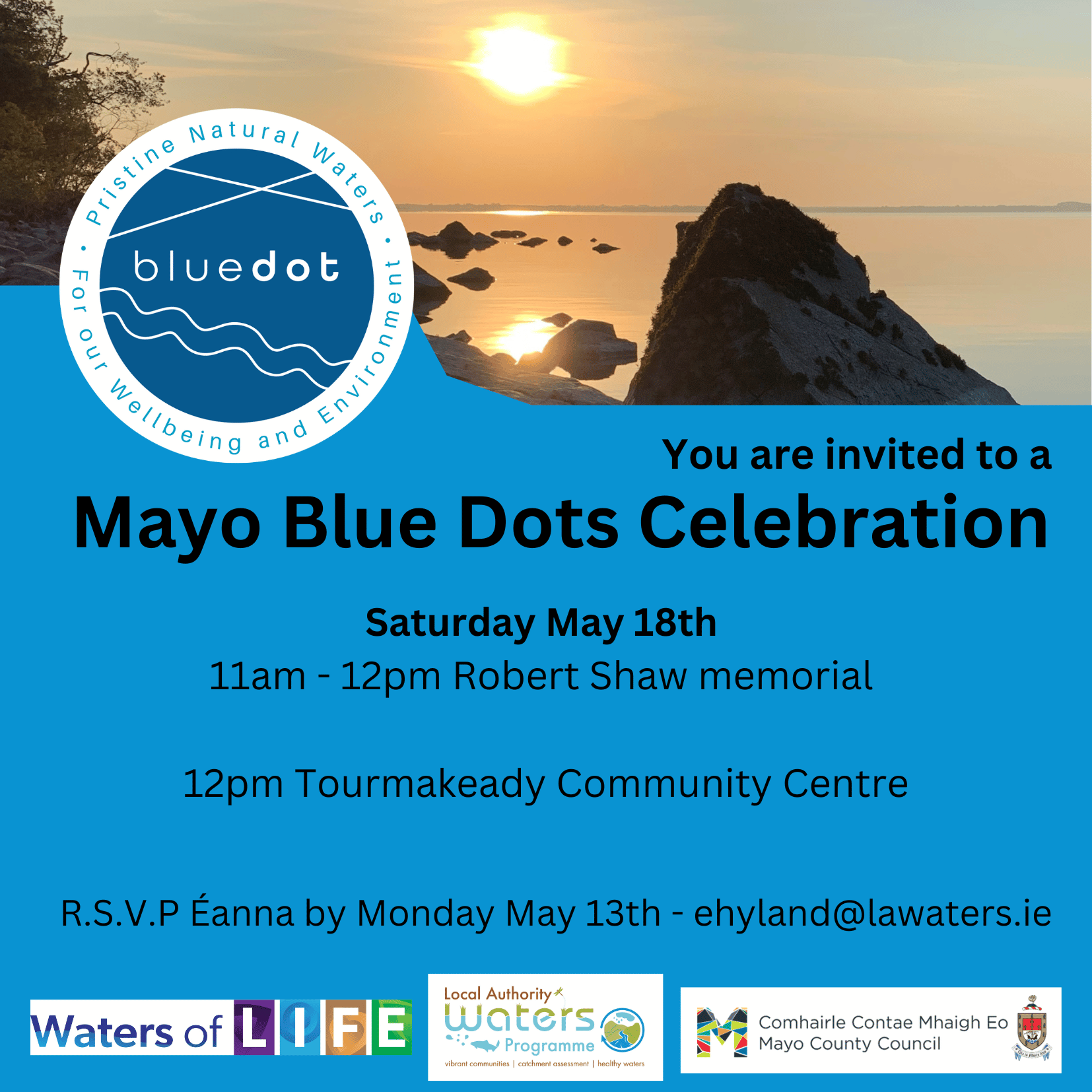 For further information on the event please email Éanna Hyland, Community Water Officer for Mayo: ehyland@dev.lawaters.ie.